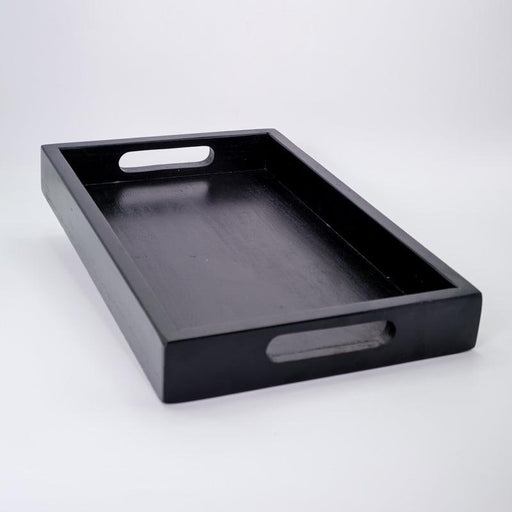 Acacia Wooden Serving Tray with Handles Enamel Black