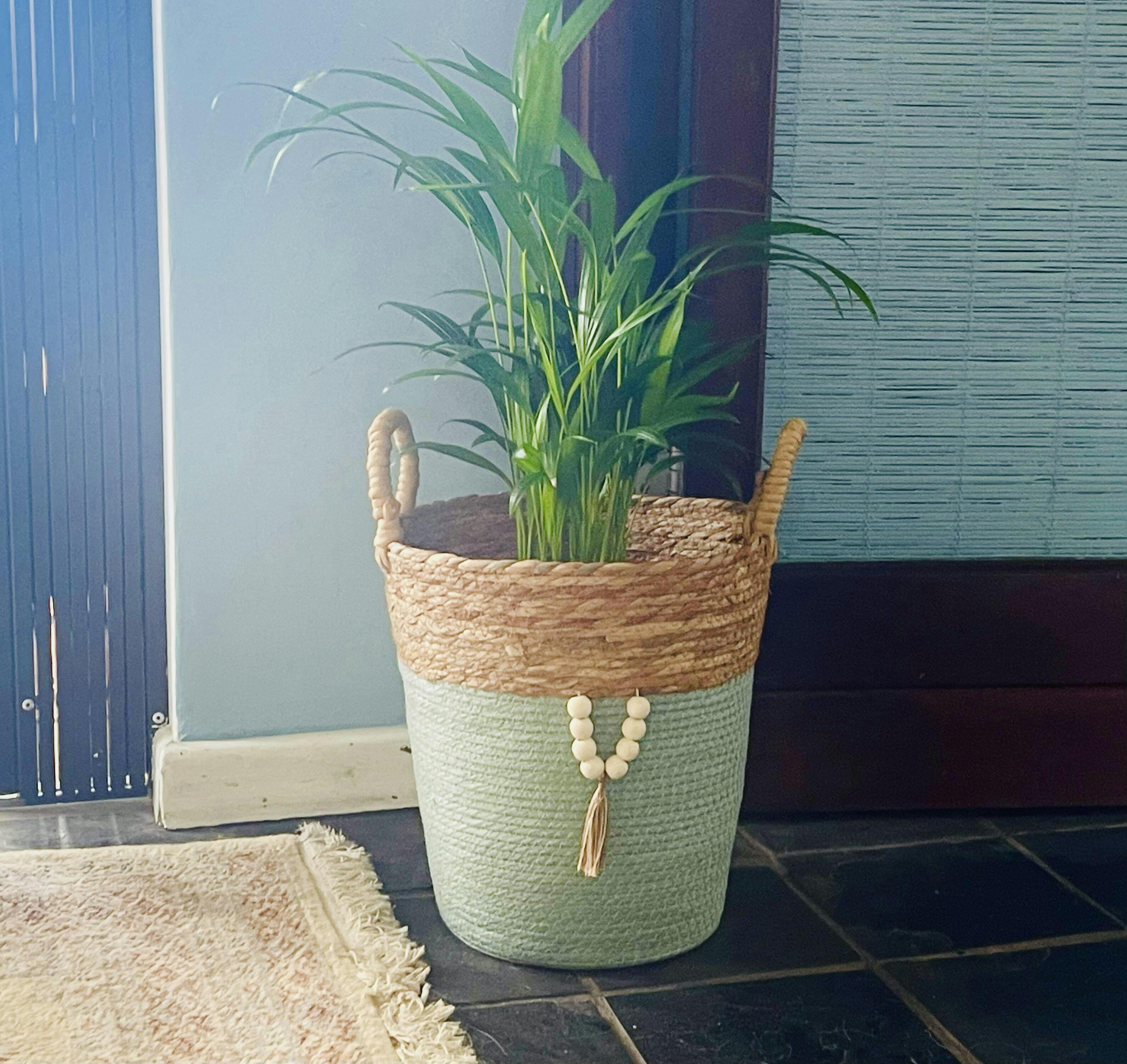 Transform your home with our Conical Bulrush and Paper Basket in trendy Moss. A perfect blend of home decor and storage, this basket adds a designer touch to your home while keeping your space stylish and organized.
