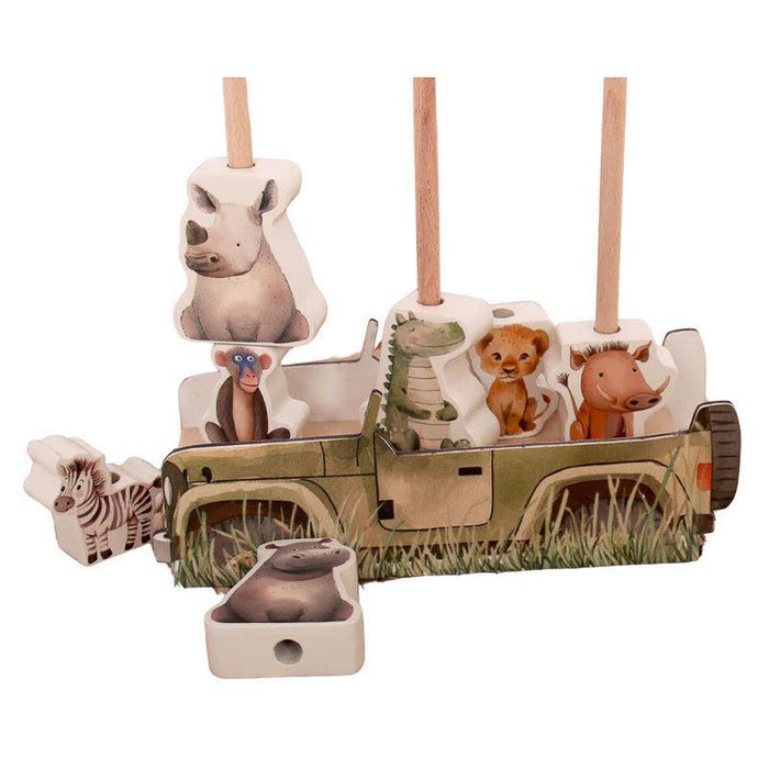 This wooden animal stacker encourages creative play while building coordination and early learning skills. With its safari vehicle base, it turns every playtime into a wild bush adventure.